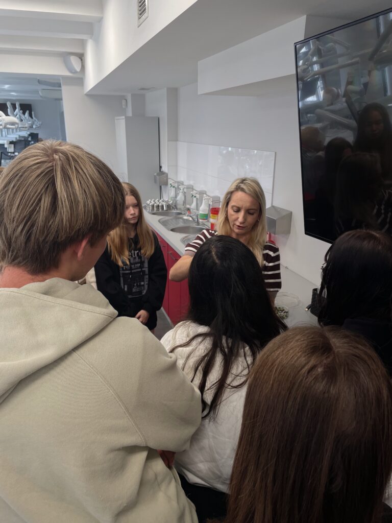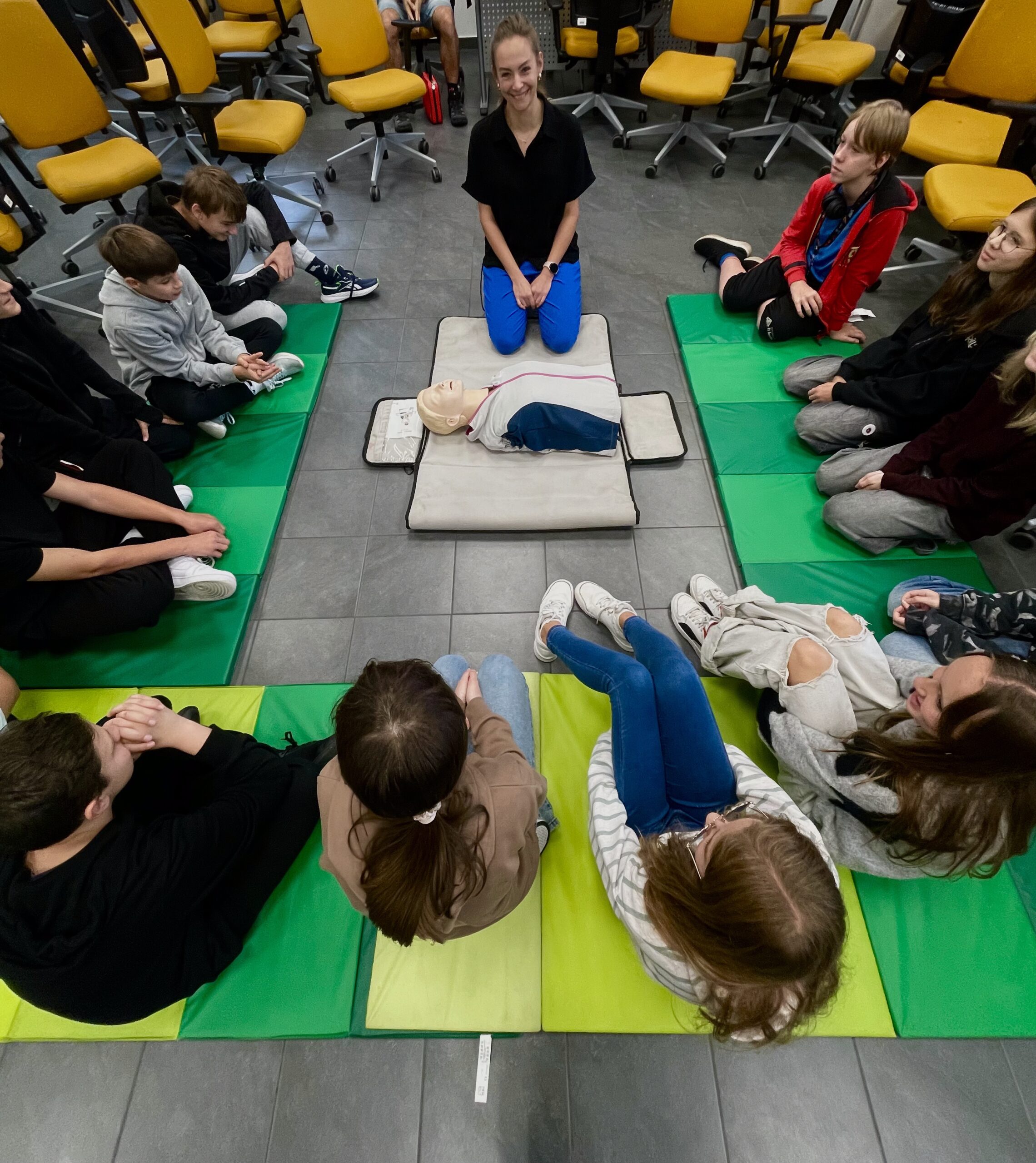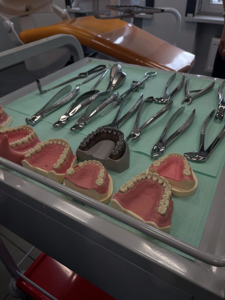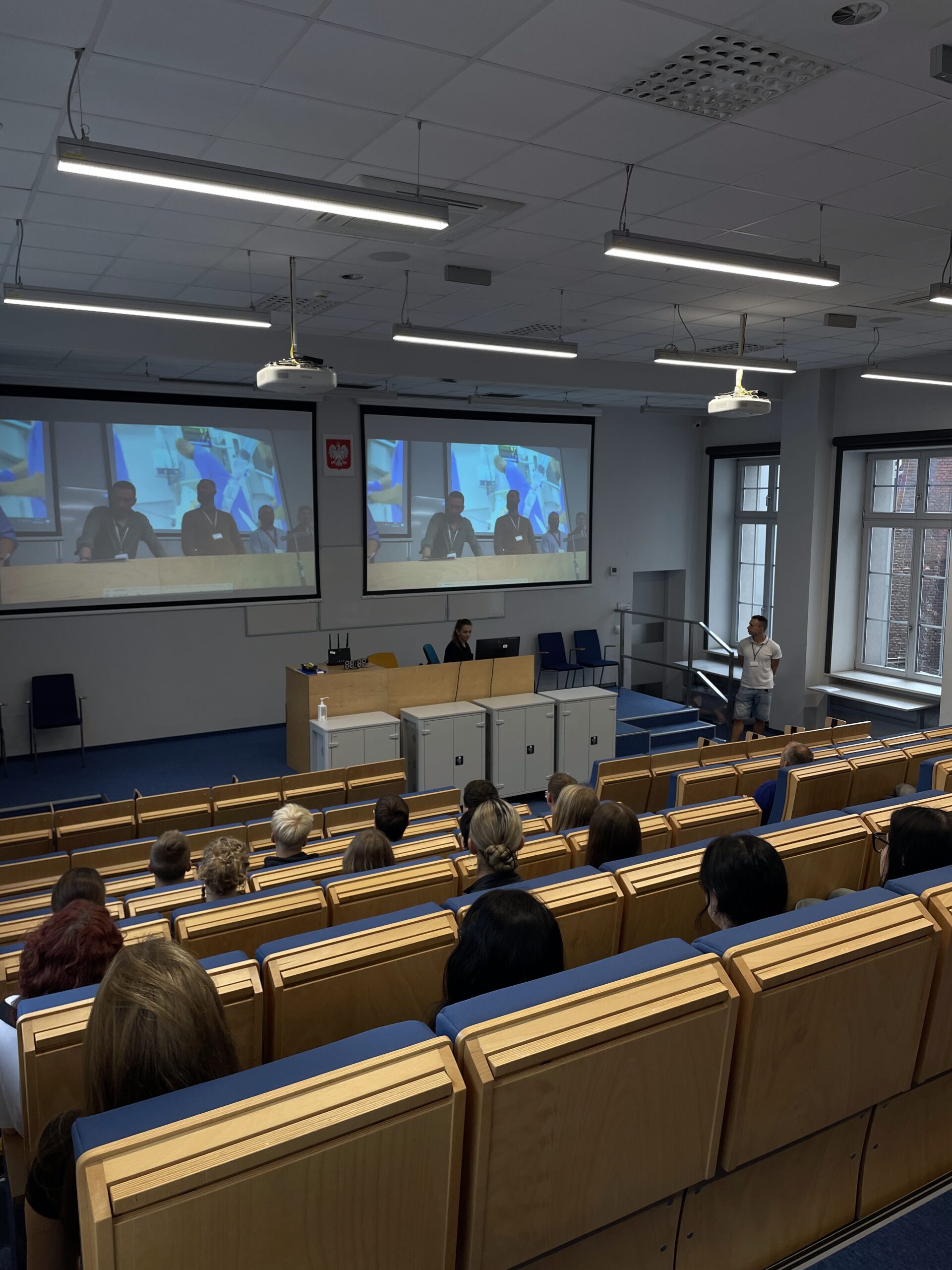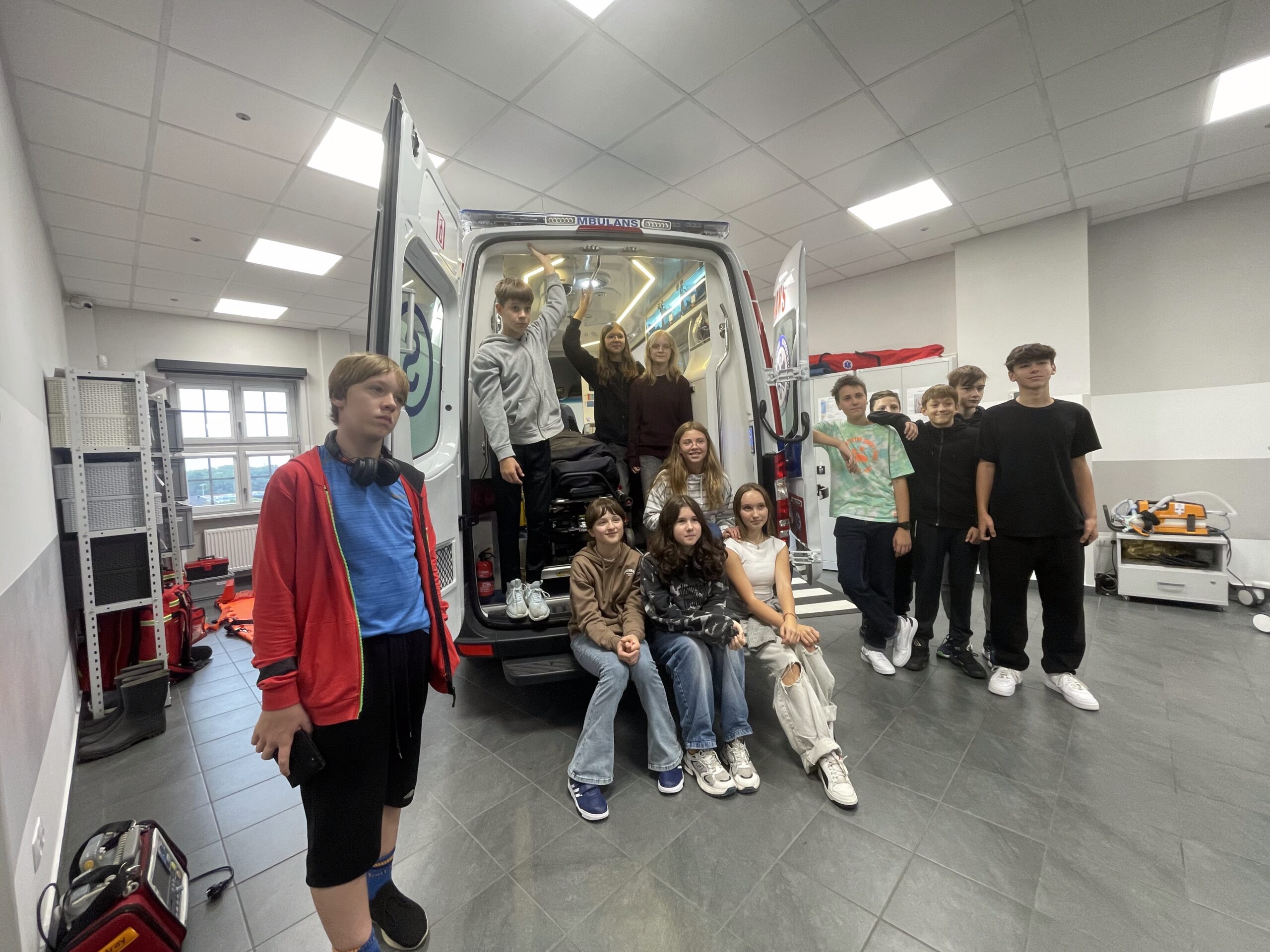 Zademonstrowaliśmy im sale wysokiej wierności i niskiej wierności, pokazując jak działają nasze symulatory. Uczniowie mieli okazje osłuchać klatkę piersiowa za pomocą stetoskopu i usłyszeć jak brzmi zdrowe i zmienione chorobowo płuco oraz mieli okazje przeprowadzić procedurę intubacji. Na Sali stomatologicznej mieli okazje wyrwać zęba czy usiąść na fotelu dentystycznym i poznać sprzęt medyczny, którzy używają dentyści w swoich gabinetach. Zwieńczeniem wycieczki było odwiedzenie 5 pietra, gdzie znajduje się karetka Zespołu Ratownictwa Medycznego.